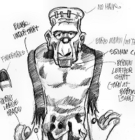 | During the WILD CHICAGO shoot, Rick unveiled some of the current RANKIN/BASS projects he is working on and showed his sketchbook with many of the designs that were used to devlop figures and figurines. Some are still in the planning stages like this FANG drawing! |