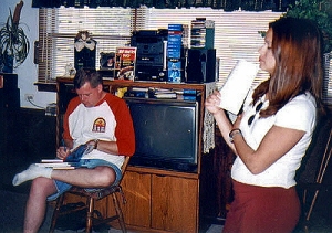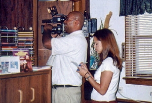 | ASSOCIATE PRODUCER of 'WILD CHICAGO' LISA MARSHFIELD goes over shooting detailswith Rick. |