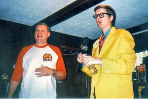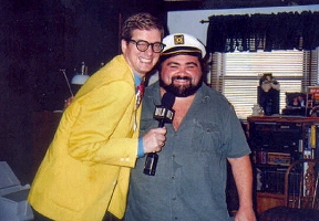 | Segment Host DICK O' DAY poses for the camera with RANKIN/BASS Research assistant TOM FREDERICK (Yes...he does look like CAP'N HUFNPUF from BEANY & CECIL) |