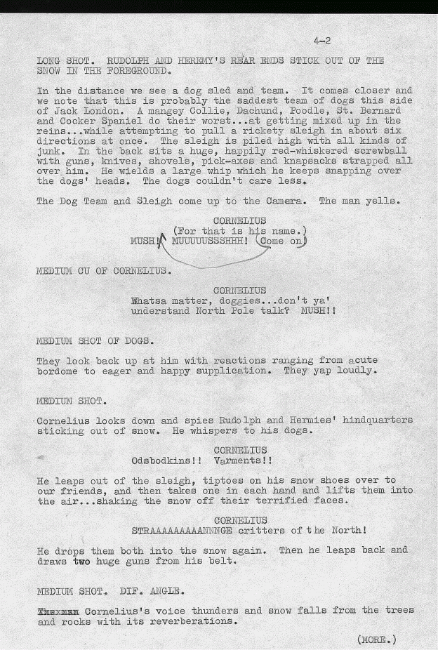 Another page from the original script of "Rudolph The Red-Nosed Reindeer! (Read the entire script in the book THE MAKING OF THE RANKIN/BASS HOLIDAY CLASSIC: RUDOLPH THE RED-NOSED REINDEER!)