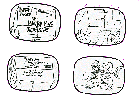 The original storyboards depicting the opening title sequence to "Santa Claus Is Comin' To Town"!
